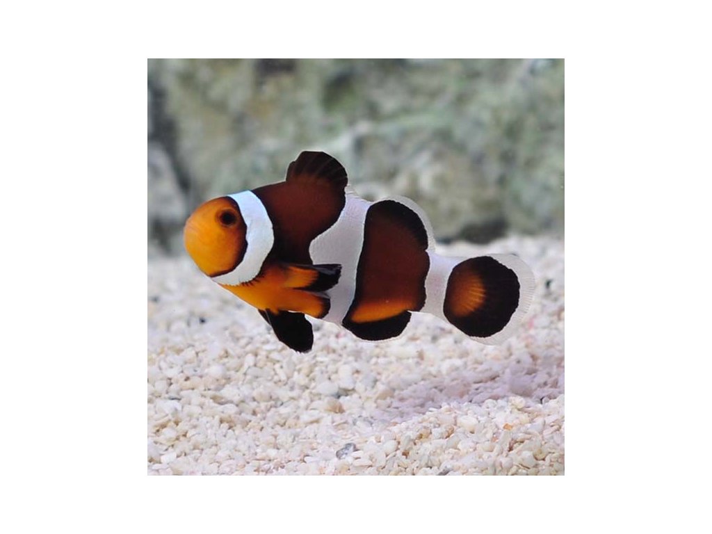 - Bežné názvy: Caramel Ocellaris Clownfish, „karamelový klaun“, často ide o juvenilnú fázu „black ocellaris“ (Darwin línia) s karamelovo‑hnedým telom.