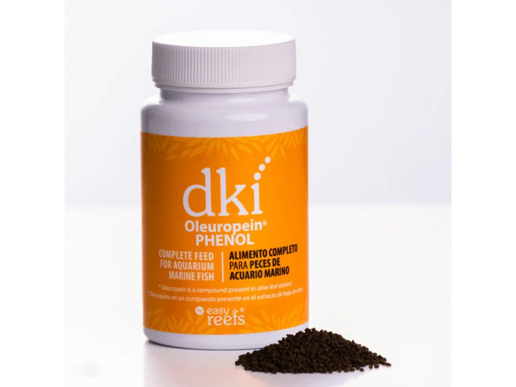 Žlté balenie majú Easy Reefs DKI pelety Oleuropein Phenol. Sú to vysoko výživné pelety Easy Reefs DKI s Oleuropeinom kompletného krmiva pre akváriové morské ryby Vašej rifovej alebo Only fish nádrže.